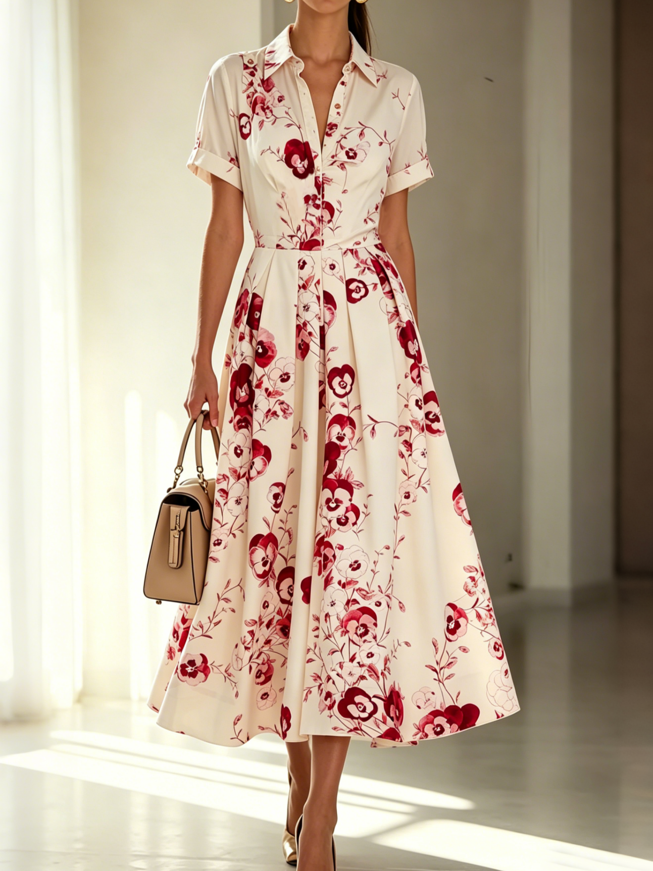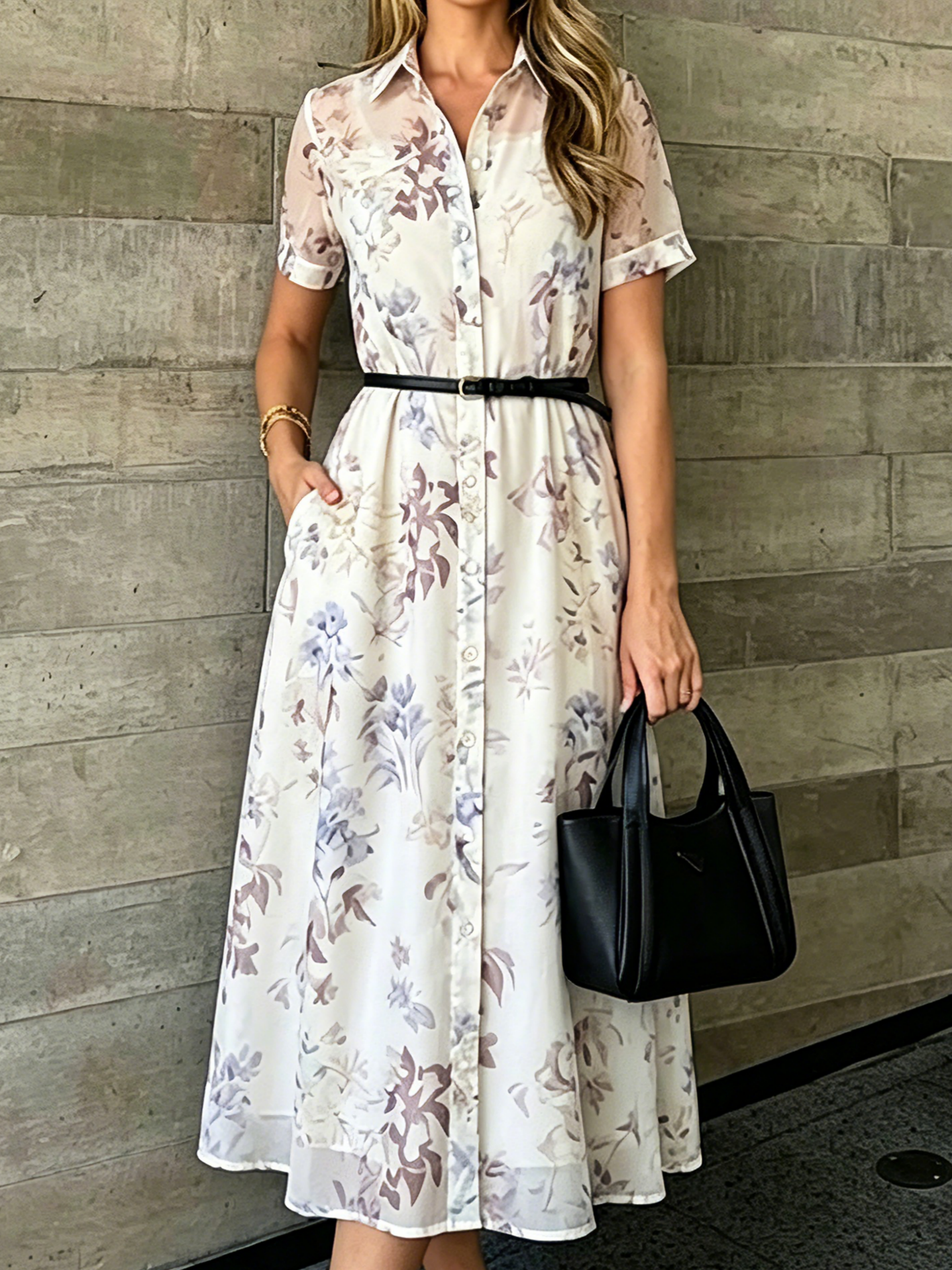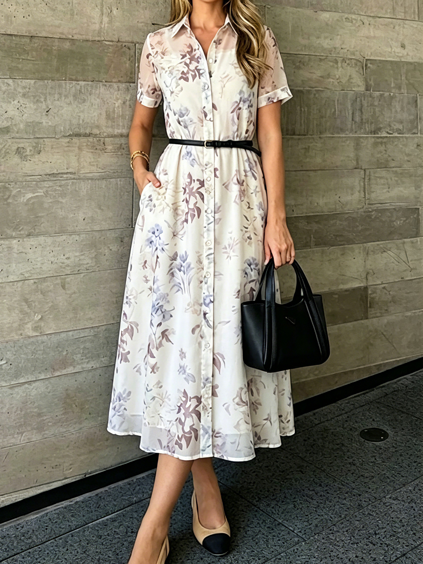 Elegant Shawl Collar Regular Sleeve Dress With Belt
