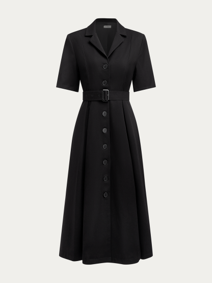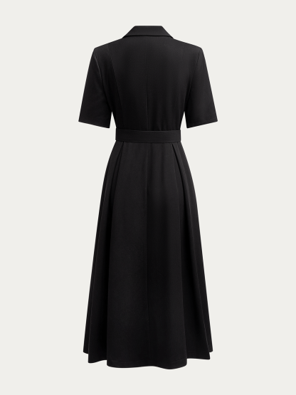 Elegant Plain Slit Lapel Collar Midi Dress With Belt