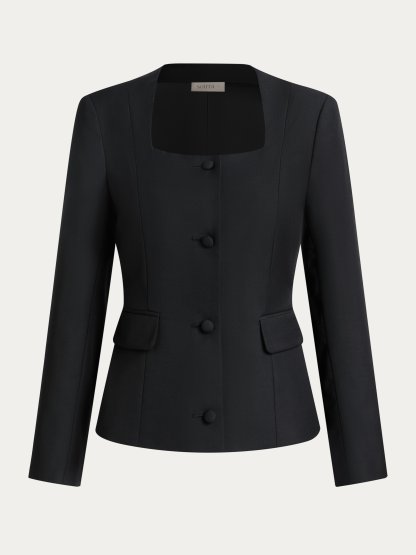 Elegant Square Neck Wool Blazer