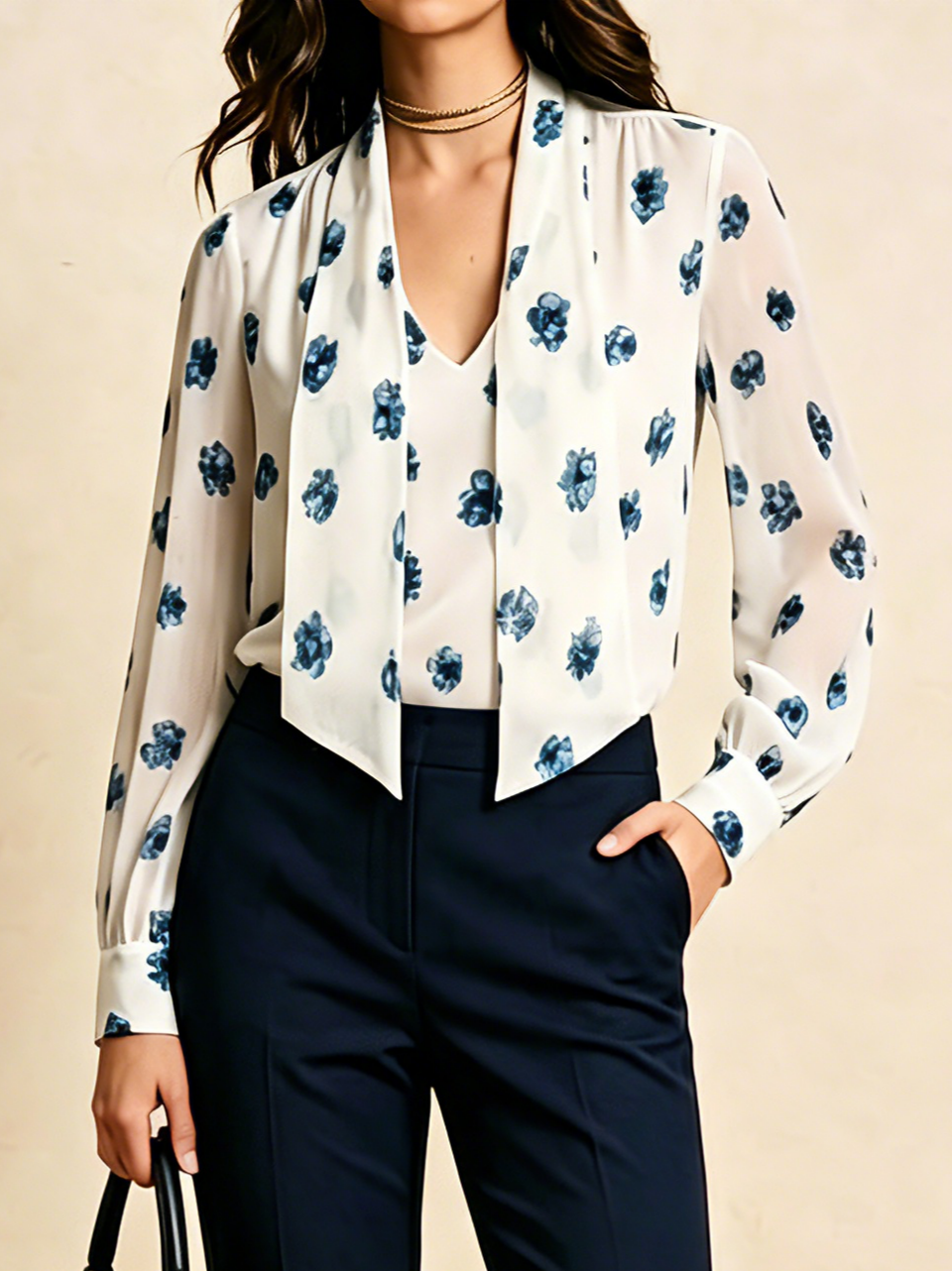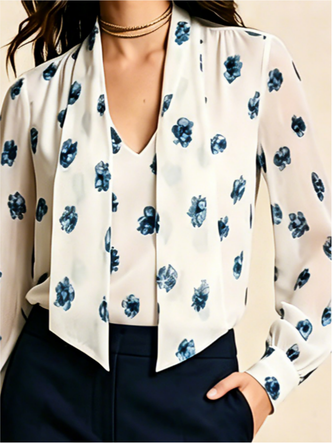 Floral Urban Regular Fit Tie Neck Blouse