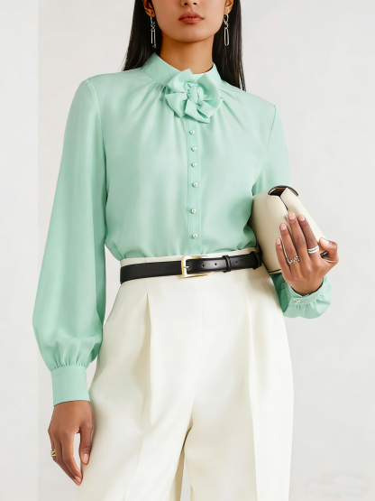 Loose Balloon Sleeve Plain Urban Blouse