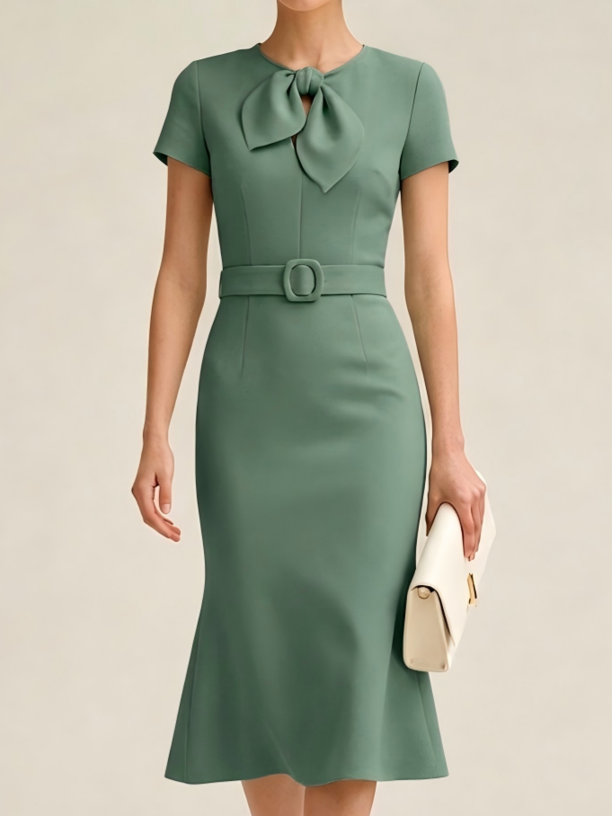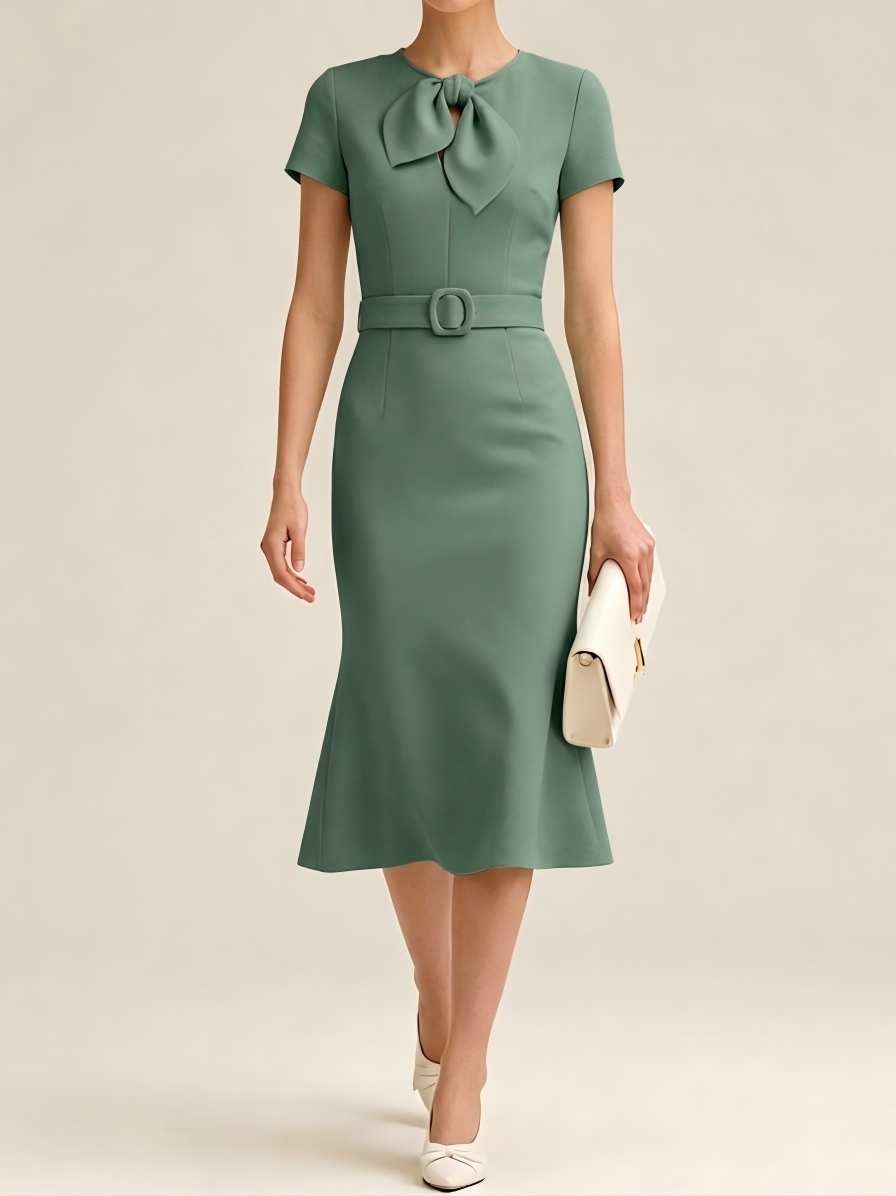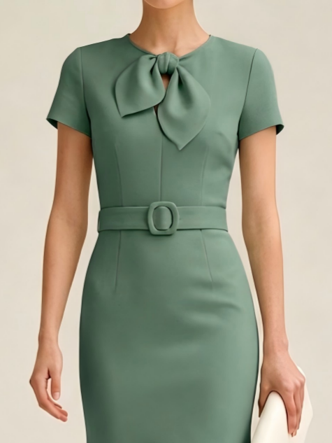 Regular Fit Urban Plain Crew Neck Dress With Belt