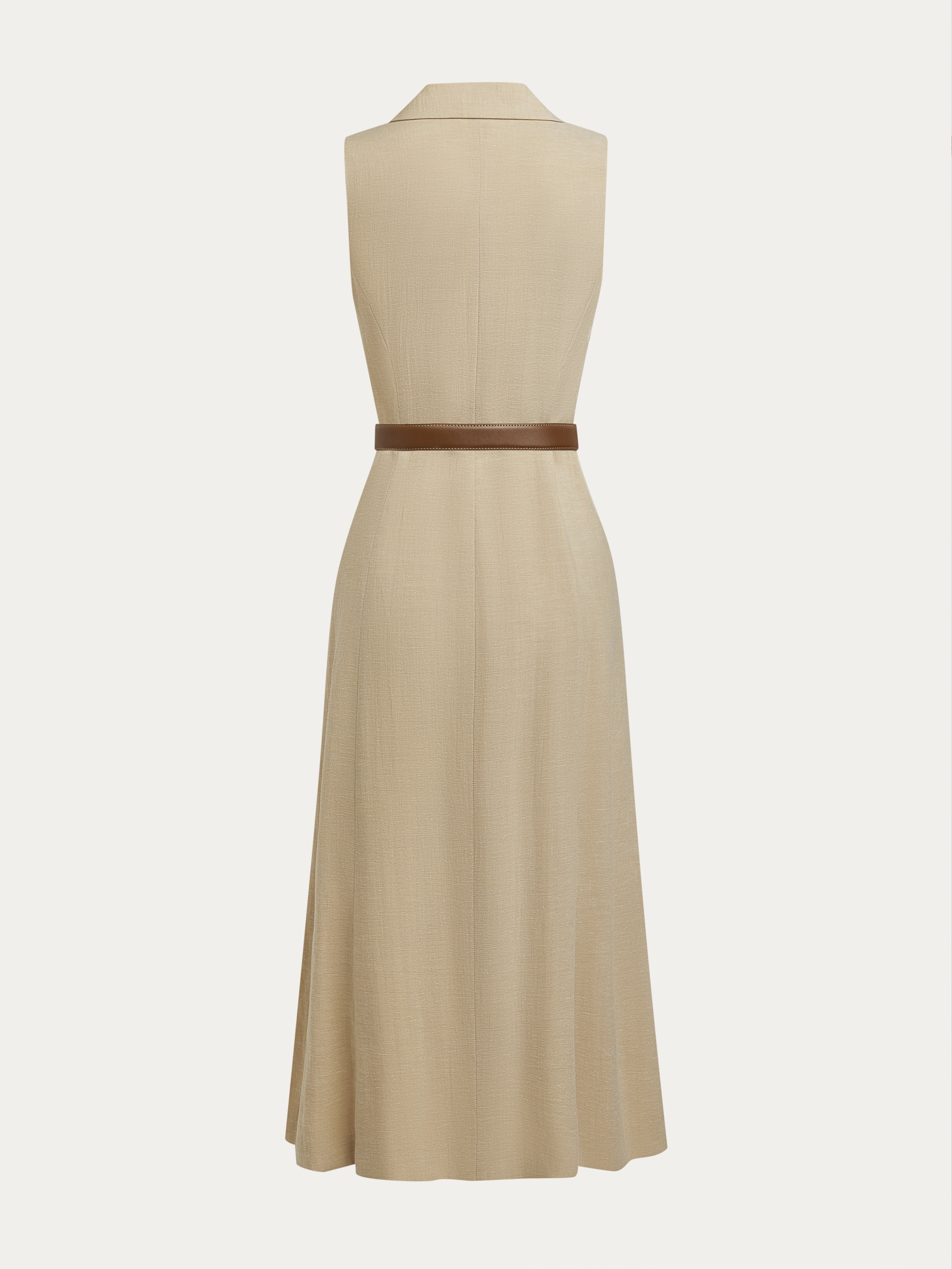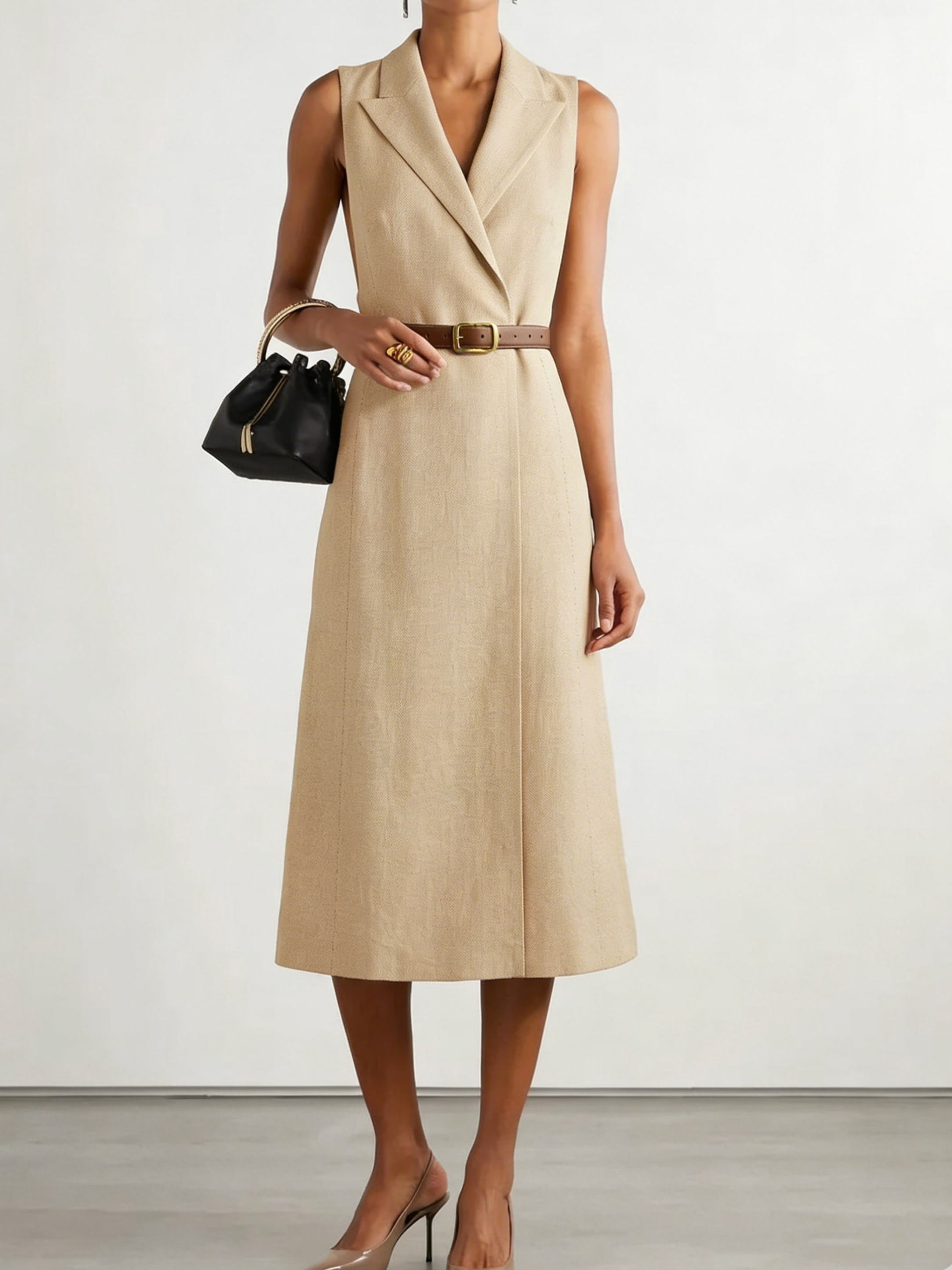 Regular Sleeve Lapel Collar Regular Fit Elegant Dress With Belt