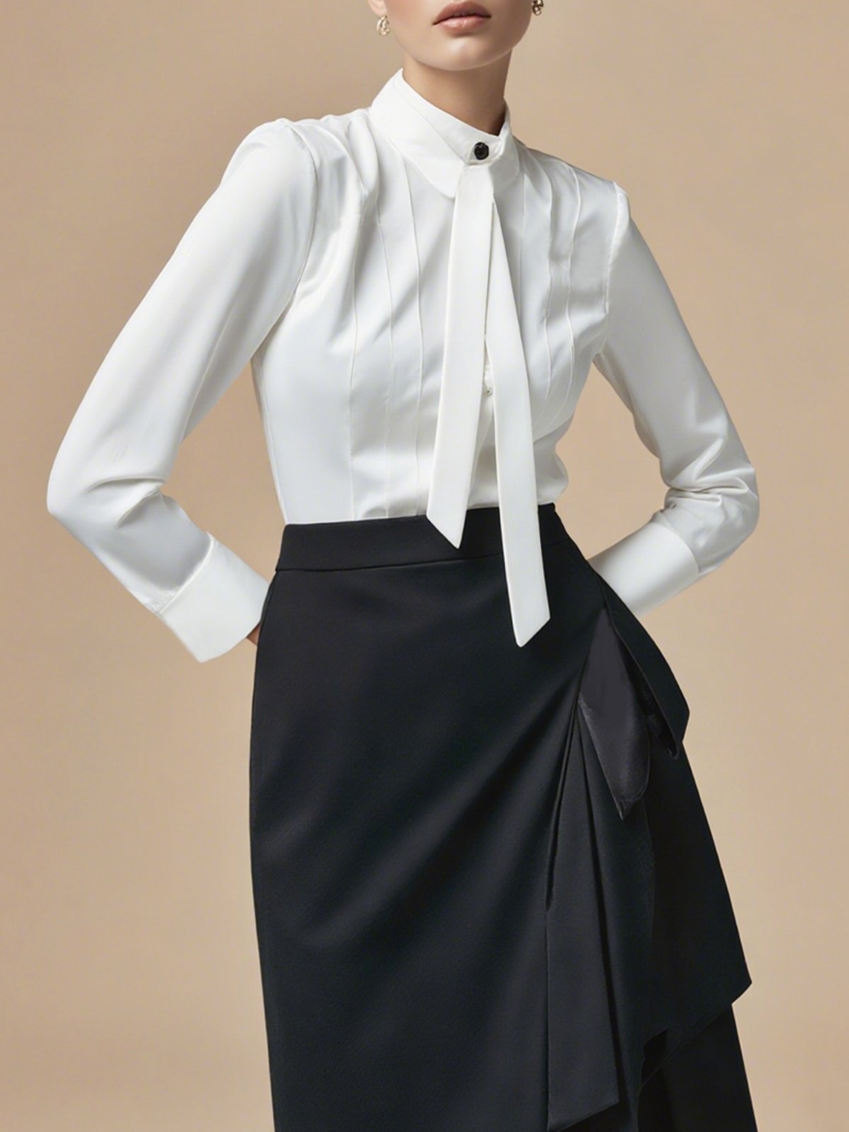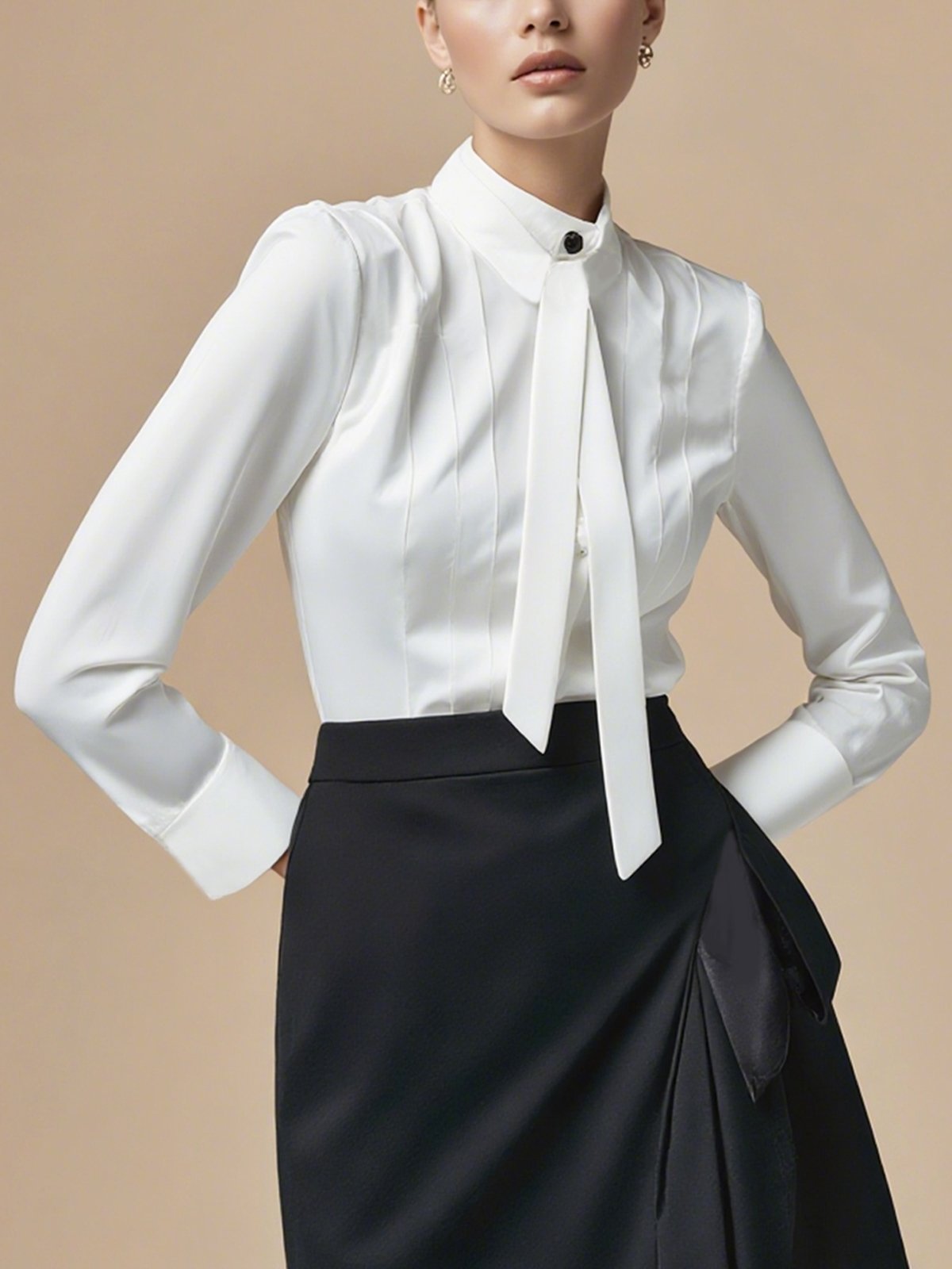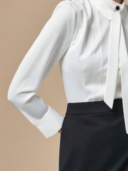 Satin Urban Plain Lace-up Stand Collar Shirt