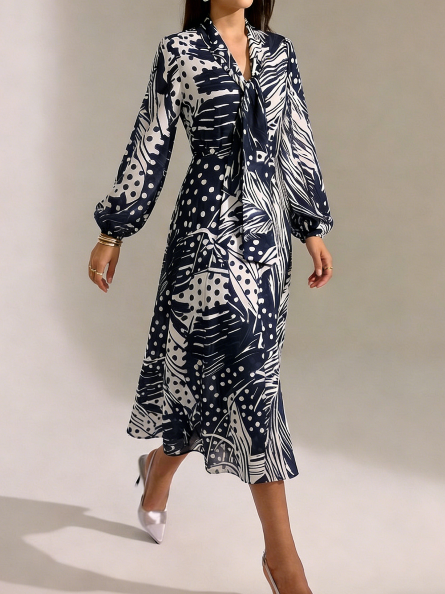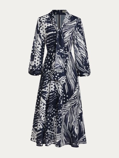 Urban Tie Neck Polka Dots Regular Fit Dress